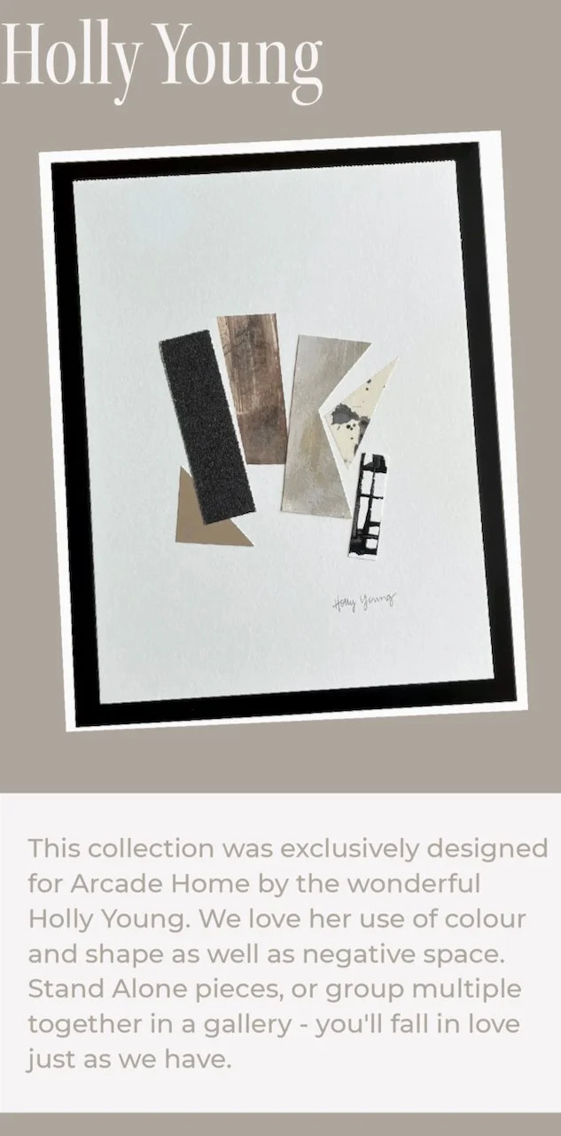 I’m excited to share that my original collages are now available framed at Arcade Home in Oakville ON. Owners Emily Cade and Melissa Sheppard have curated a beautiful collection of modern artwork, accessories, and furniture for your home.